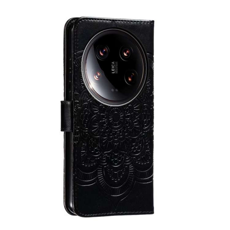Para Xiaomi 14 Ultra Sun Mandala Funda De Cuero Para Teléfono Con Patrón En Relieve (Negro)
