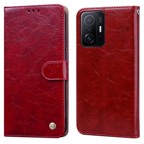 Para Xiaomi Mi 11T Funda Telefónica de Cuero de Textura de Cera de Aceite (Rojo)