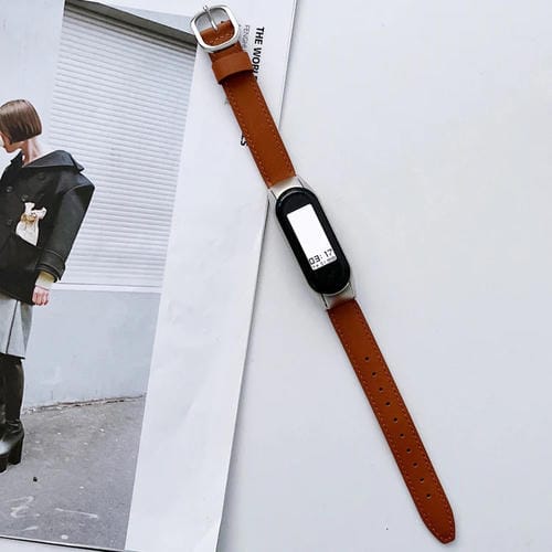 Correa de Reloj para Xiaomi Mi Band 5 / 6 de Cuero Genuino (Marrón)