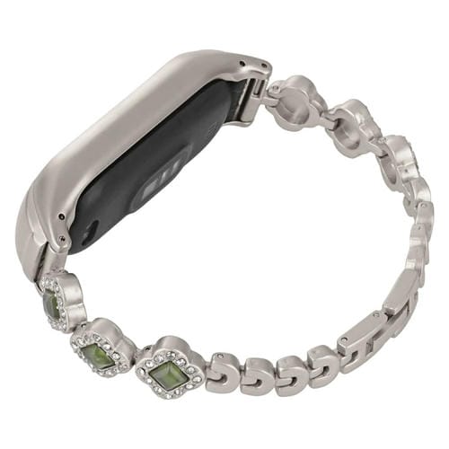 Correa de Reloj Metal para Xiaomi Mi Band 6/5 con Diamantes Trébol de Cuatro Hojas (Starlight)