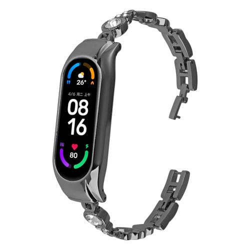 Correa de Reloj Metal para Xiaomi Mi Band 7 con Diamantes Corazón a Corazón (Negro)