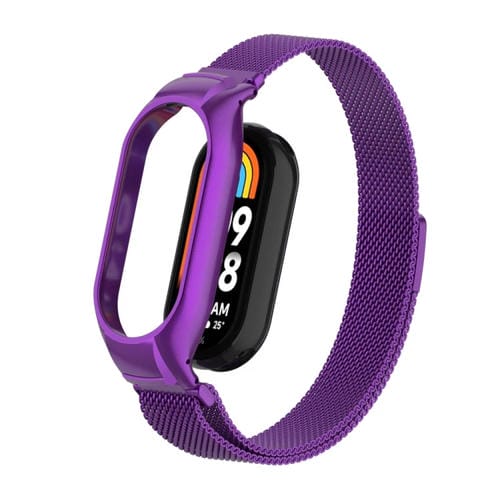 Caja de Metal Integrada + Banda Magnética Milanesa para Xiaomi Mi Band 8 (Púrpura)