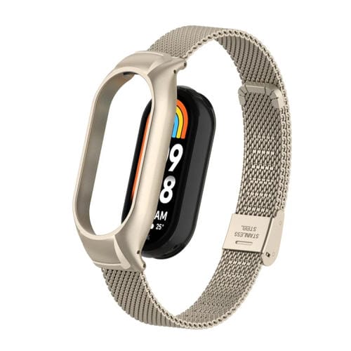 Caja de Metal Integrada + Correa con Hebilla de Malla de Acero para Xiaomi Mi Band 8 (Starlight)