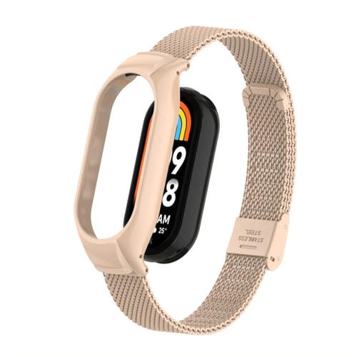 Caja metal integrada + correa Reloj Xiaomi Mi Band 8 con hebilla malla acero (Té con Leche)