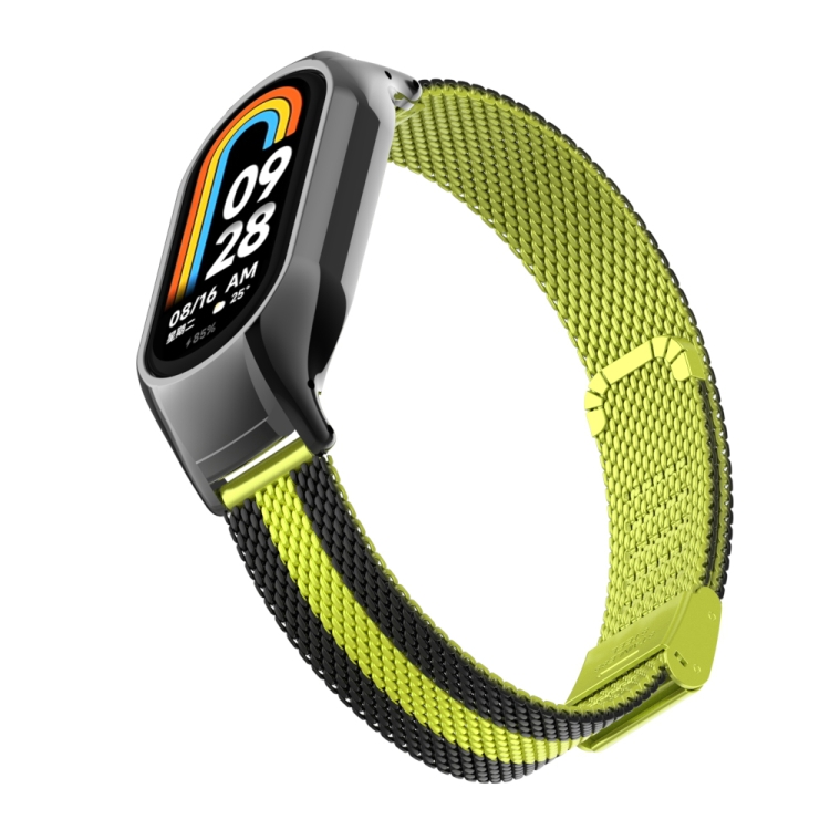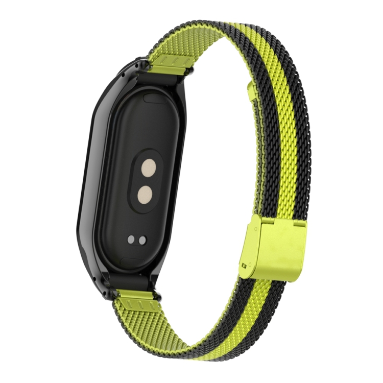 Caja de Metal Integrada para Xiaomi Mi Band 8 + Correa con Hebilla de Malla de Acero (Negro + Amarillo)