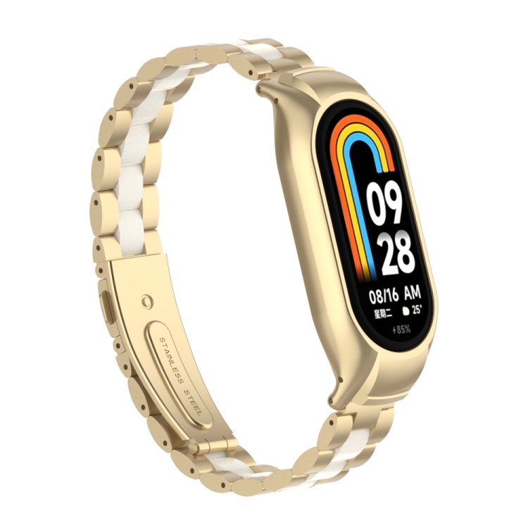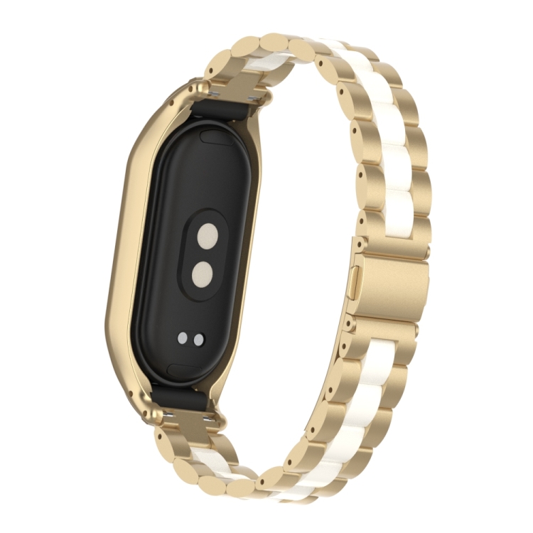 Caja de Metal Integrada y Correa de Tres Cuentas para Xiaomi Mi Band 8 (Champán + Blanco)