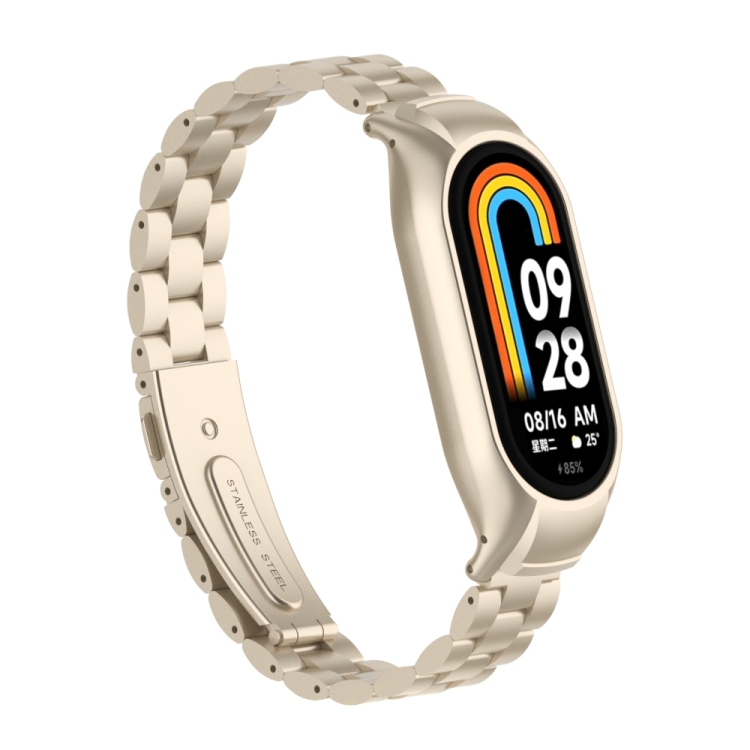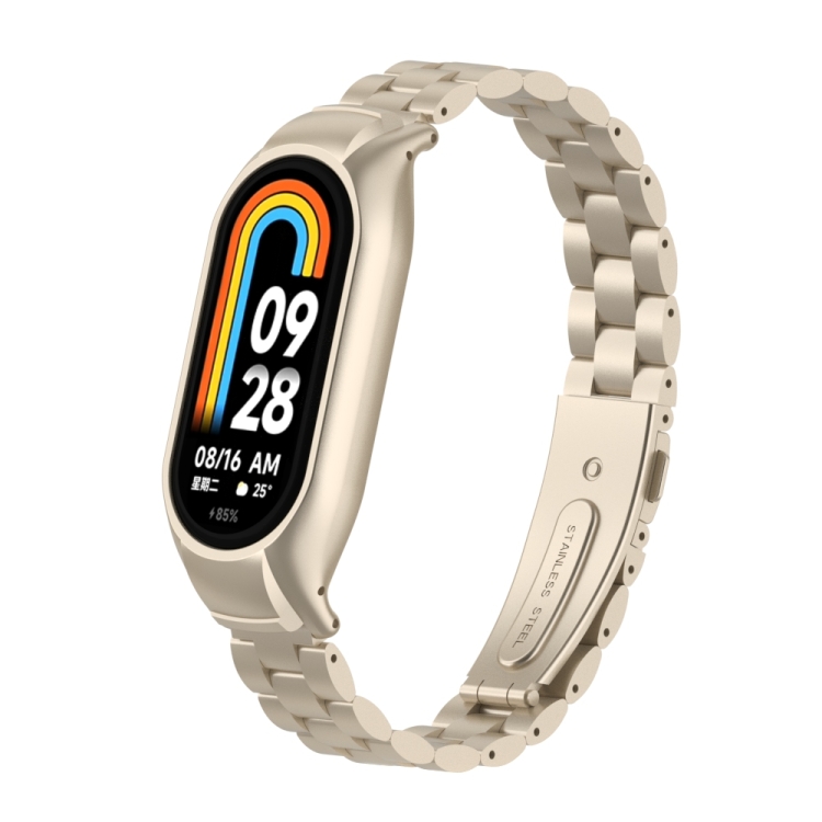 Caja de Metal Integrada + Correa Tres Cuentas para Xiaomi Mi Band 8 (Starlight)