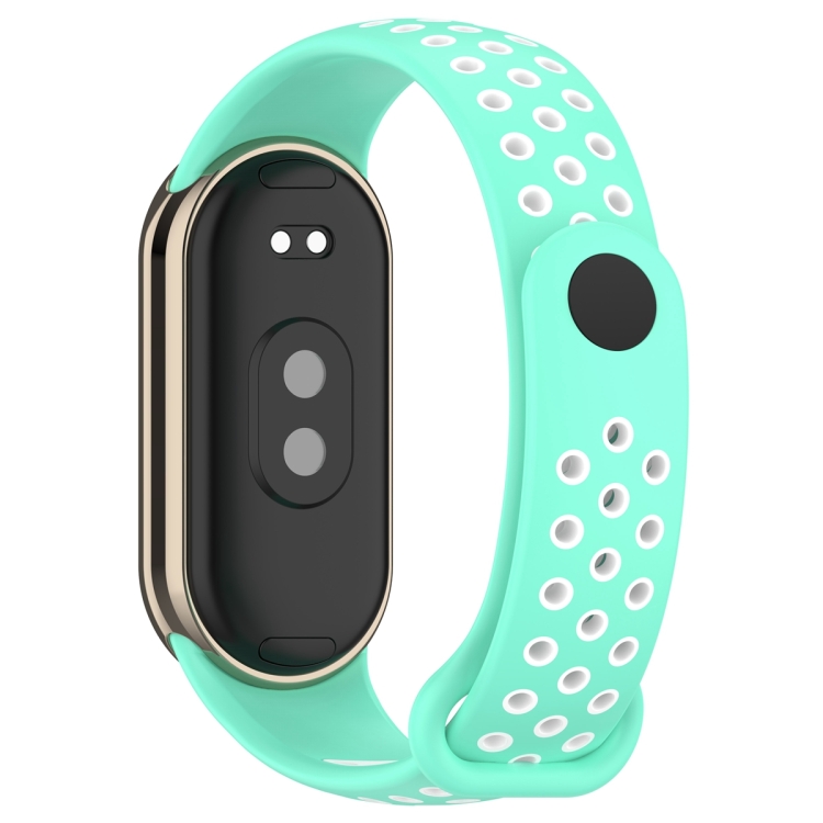 Correa de Silicona para Xiaomi Mi Band 8 con Hebilla de Uñas Dos Colores (Blanco Verde Azulado)