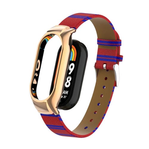Estuche de Metal integrado + Correa de Cuero para Xiaomi Mi Band 8 (Rojo)
