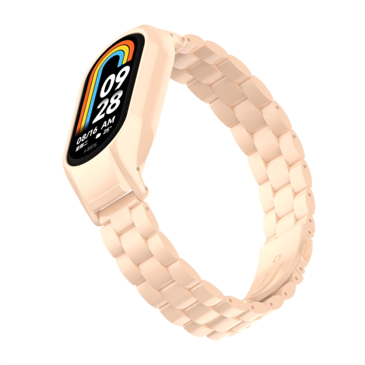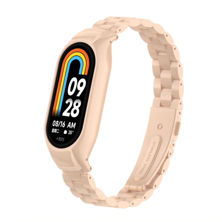 Estuche de Metal integrado + Correa de Tres Cuentas para Xiaomi Mi Band 8 (Té con Leche)