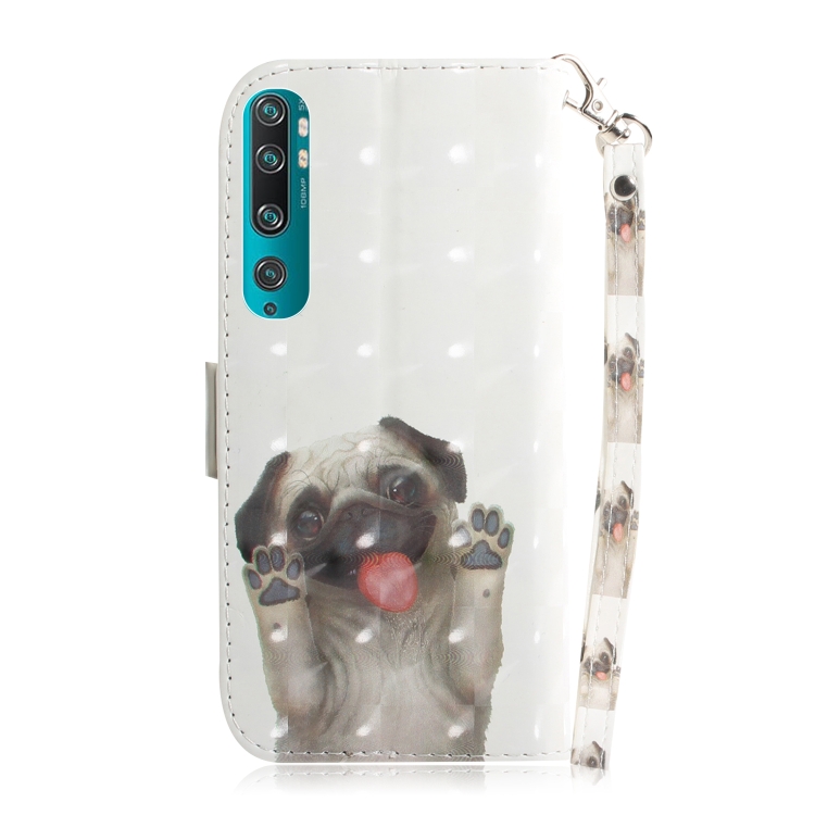 Para Xiaomi Mi Note 10 Funda de Cuero con Tapa Horizontal de Pintura 3D con Soporte y Ranura para Tarjeta y Billetera y Cordón (Pug)