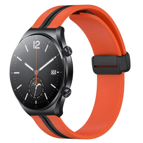 Correa de Reloj 22mm Xiaomi Mi Watch S1 Silicona Cierre Magnético Plegable (Naranja + Negro)