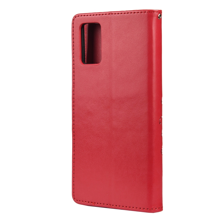 Para Xiaomi Poco F3 Mariposa Patrón de Flora Horizontal Flip Funda con Soporte y Ranuras para Tarjetas y Billetera (Rojo)