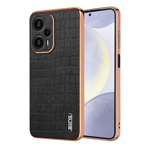 Para Xiaomi Poco F5 Azns Caja de Teléfono de Cobertura Total con Textura de Cocodrilo con Marco Galvanizado (Negro)