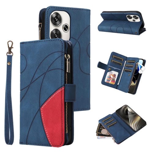 Para Xiaomi Poco F6 Funda de Cuero para Teléfono con Billetera con Cremallera y 9 Ranuras para Tarjetas de Doble Color (Azul)