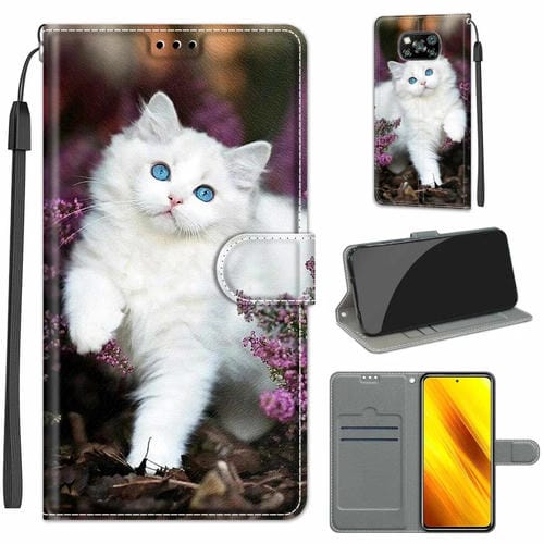 Para Xiaomi Poco X3 Nfc Tenso de Color Dibujo de Color Magnético Cierre Magnético Flip Pu Funda de Cuero con Soporte y Ranuras para Tarjetas (C08 Flor Bush Big White Cat)