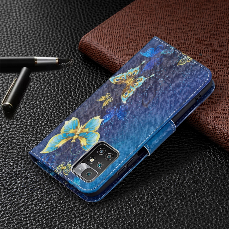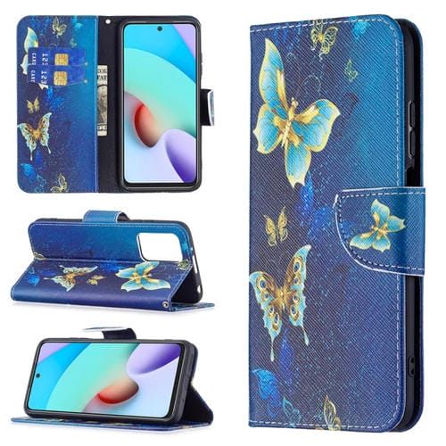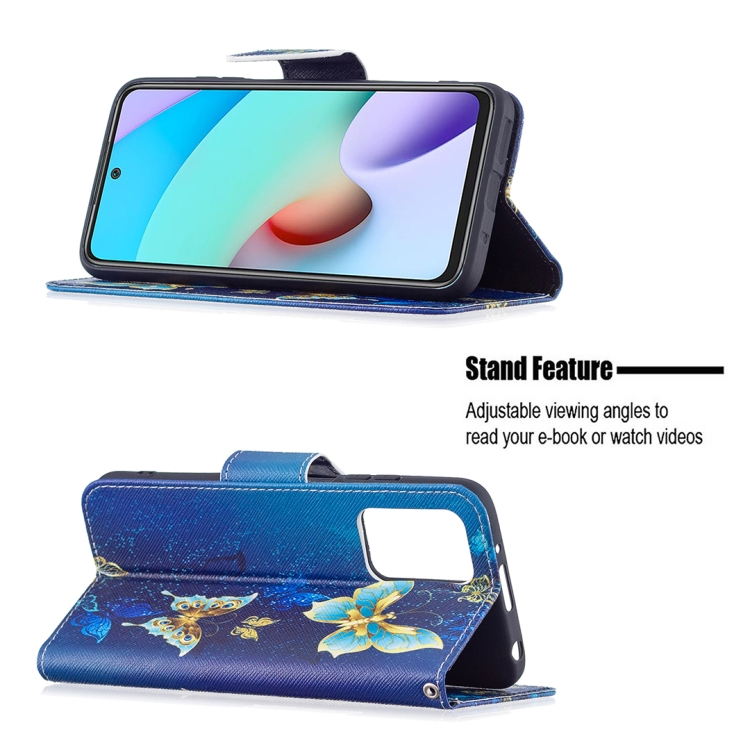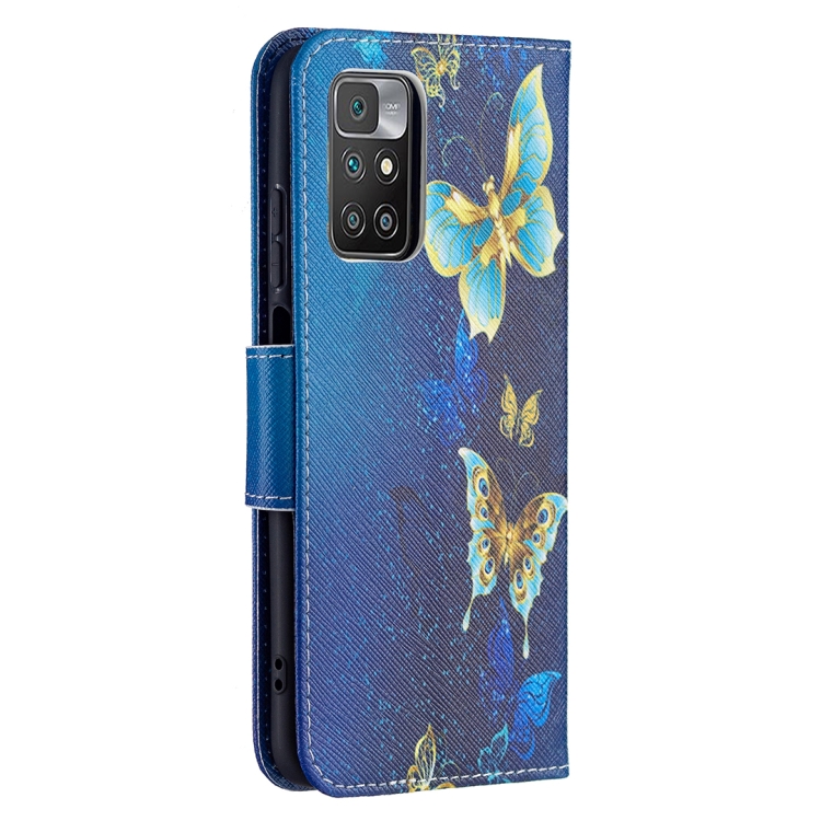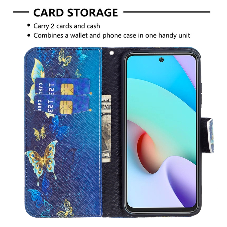 Para Xiaomi Redmi 10 Patrón de Dibujo de Color Patrón de Dibujo Horizontal Funda de Cuero con Soporte y Ranuras para Tarjetas y Billetera (Mariposa de Oro)