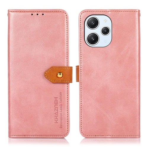 Para Xiaomi Redmi 12 4G Khazneh Funda de Cuero con Tapa de Textura de Piel de Vaca de Dos Colores (Oro Rosa)