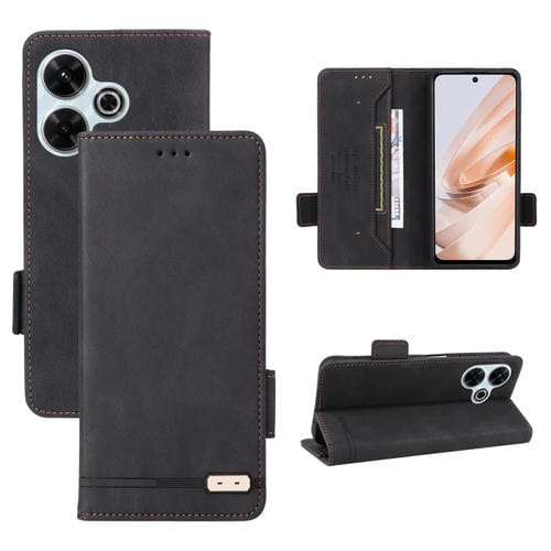 Para Xiaomi Redmi 13 4G Funda de Cuero para Teléfono con Cierre Magnético Global (Negro)