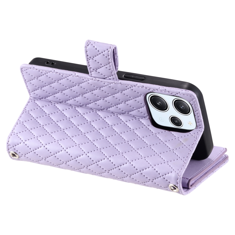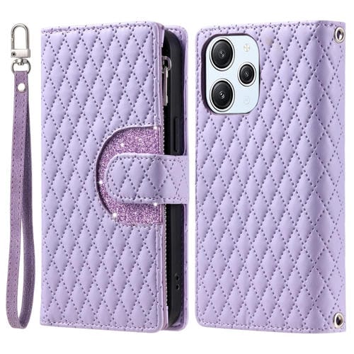 Para Xiaomi Redmi 13 4G Glitter Lattice Zipper Wallet Funda de Cuero para Teléfono (Púrpura)