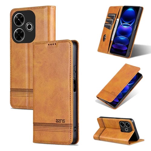 Para Xiaomi Redmi 13 4G Global Azns Funda para Teléfono con Tapa de Cuero con Textura de Pantorrilla Magnética (Marrón Claro)