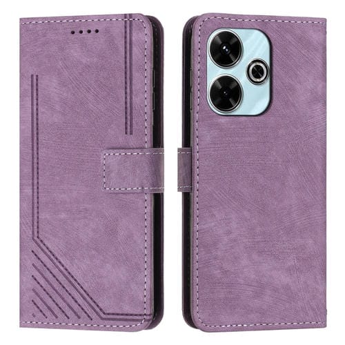 Para Xiaomi Redmi 13 4G Skin Feel Funda de Cuero para Teléfono con Patrón de Rayas y Cordón Largo (Púrpura)