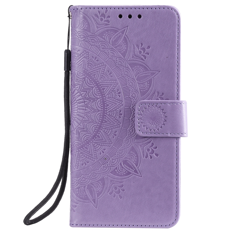 Para Xiaomi Redmi 13 4G Totem Flower Funda de Cuero En Relieve para Teléfono con Cordón (Púrpura)