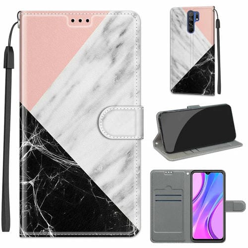 Para Xiaomi Redmi 9 Voltaje de Color Dibujo de Color Magnético Clascar Horizontal Flip Pu Funda de Cuero con Soporte y Ranuras para Tarjetas (C07 Rosa Blanco Negro)
