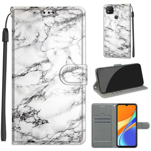 Para Xiaomi Redmi 9C Voltaje de Color Dibujo de Color Magnético Clascar Horizontal Flip Pu Funda de Cuero con Soporte y Ranuras de Tarjetas (Mármol Blanco C01)