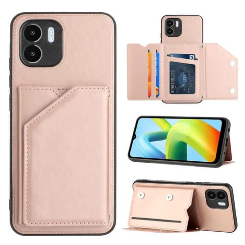 Para Xiaomi Redmi A1 / A2 4G Skin Feel Pu + TPU + PC Ranuras para Tarjetas Funda para Teléfono (Oro Rosa)