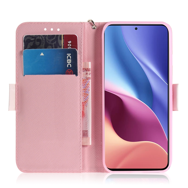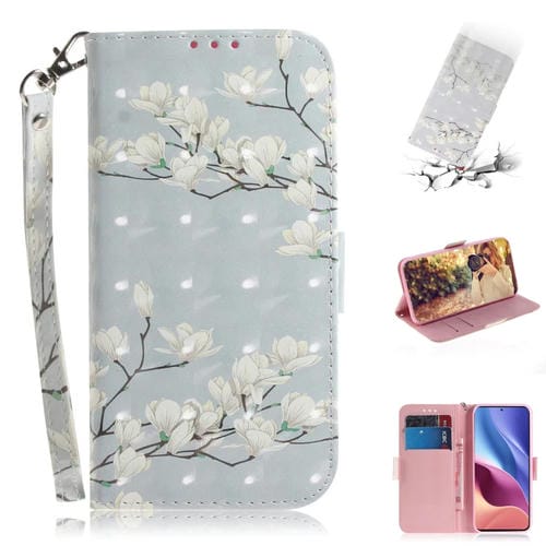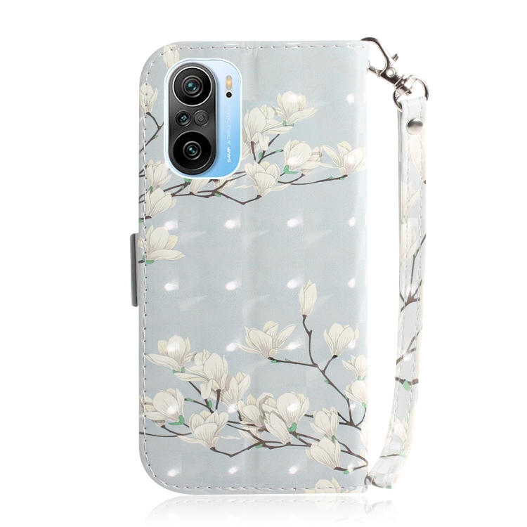 Para Xiaomi Redmi K40 / K40 Pro / Poco F3 3D Dibujo de Color Dibujo Horizontal Flip Horizontal Funda con Soporte y Ranuras para Tarjetas y Billetera y Lanyard (Magnolia)