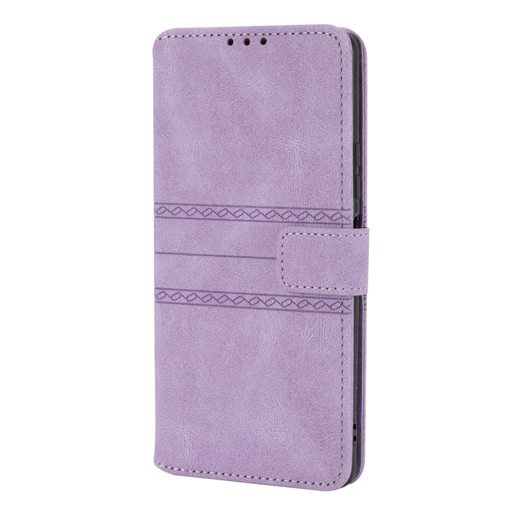 Para Xiaomi Redmi Note 10 Pro 5G Hebilla Magnética con Rayas En Relieve Pu + TPU Funda de Cuero Horizontal Flip de TPU con Soporte y Ranura para Tarjeta y Billetera y Marco de Fotos y Sling (Púrpura)