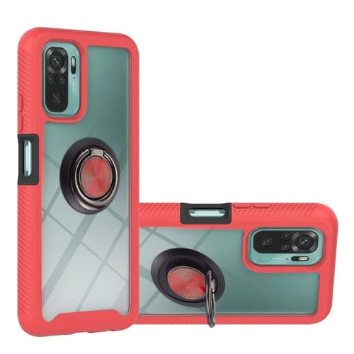 Para Xiaomi Redmi Note 10 Starry Sky Color Solid Color Series PC a Prueba de Golpes PC + TPU Funda Protectora con Soporte de Anillo y Función Magnética (Rojo)