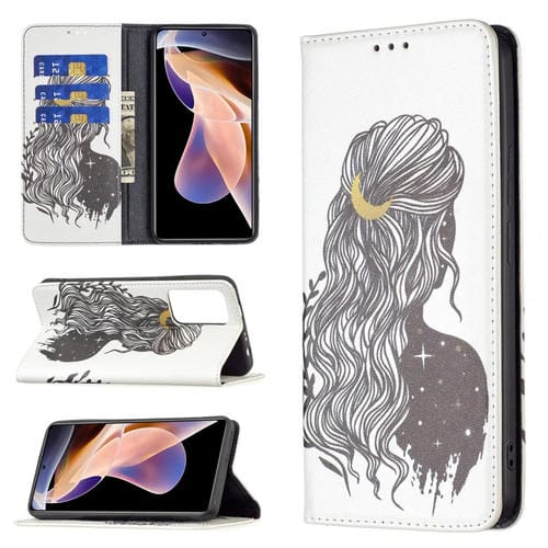 Para Xiaomi Redmi Note 11 Pro / 11 Pro + Patrón de Dibujo de Color Invisible Magnético Pu de Cuero Funda Telefónica (Niña)