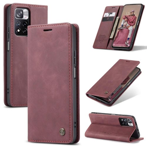 Para Xiaomi Redmi Note 11 Pro 5G / Redmi Note 11 Pro + 5G Caseme 013 Multifuncional Horizontal Flip Funda de Cuero (Vino Rojo)