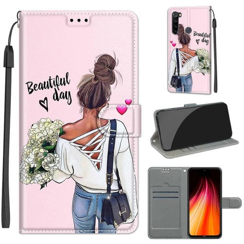 Para Xiaomi Redmi Note 8 Dibujo de Voltaje Dibujo Cierre Magnético Horizontal Flip Pu Funda de Cuero con Soporte y Ranuras de Tarjetas (C09 Flor de Abrazo)