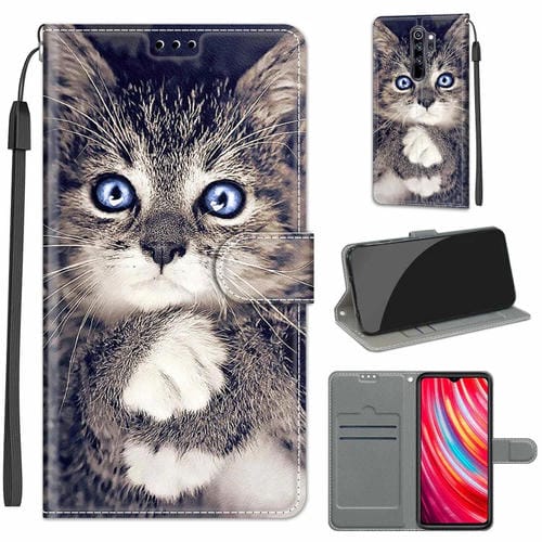 Para Xiaomi Redmi Note 8 Pro Dibujo de Color de Voltaje Piernos Magnéticos Horizontal Flip Pu Funda de Cuero con Soporte y Ranuras de Tarjetas (C02 Tenedor Mano Blanco Gato de Garra)