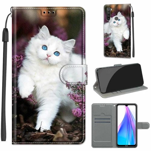 Para Xiaomi Redmi Note 8T Dibujo de Color Voltaje Dibujo Magnético Cierre de Cuero Horizontal Flip Pu Funda con Soporte y Ranuras para Tarjetas (C08 Flor Bush Big White Cat)