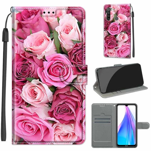 Para Xiaomi Redmi Note 8T Dibujo de Color Voltaje Dibujo Magnético Cierre de Cuero Horizontal Flip Pu Funda con Soporte y Ranuras para Tarjetas (C17 Hoja Verde Rosa Rosa)