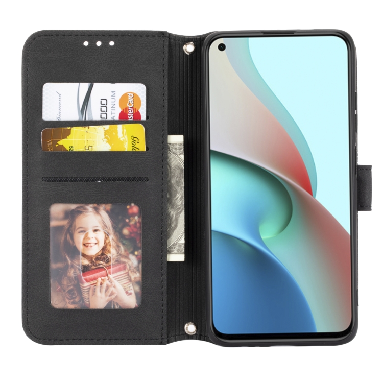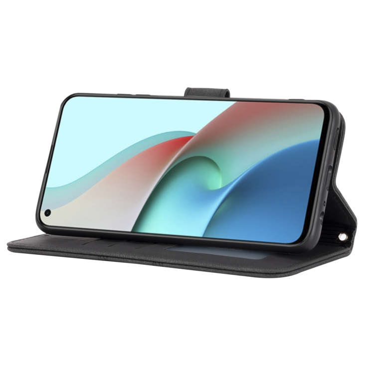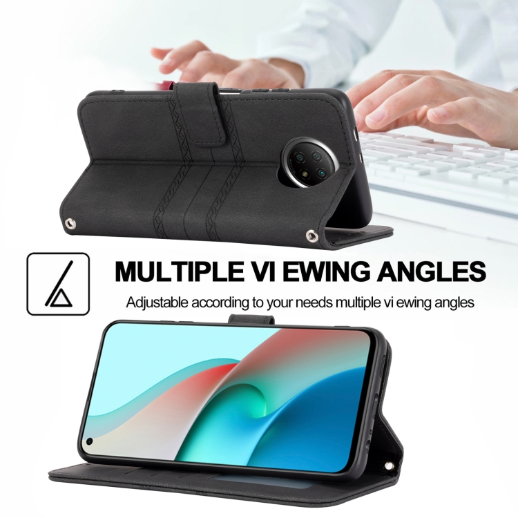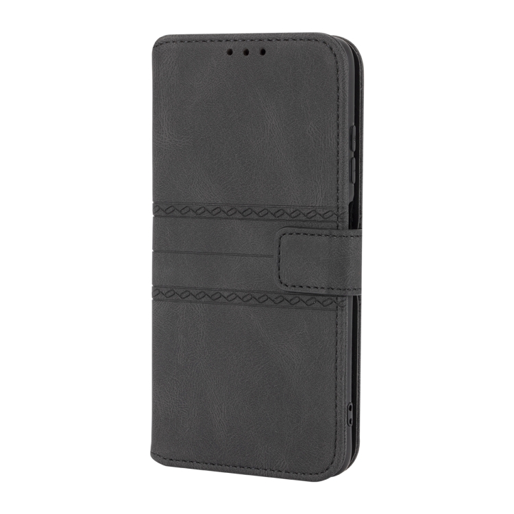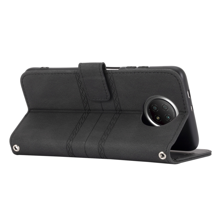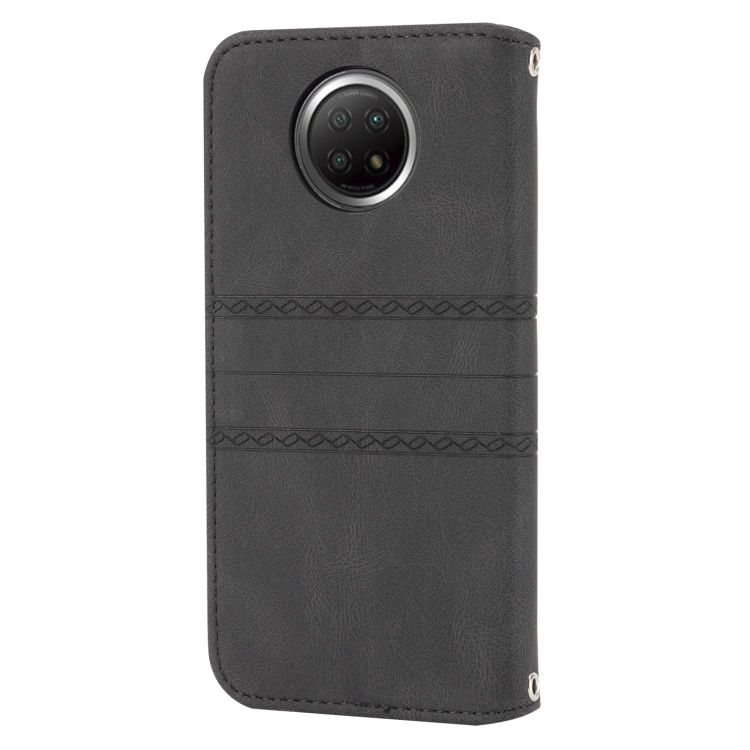Para Xiaomi Redmi Note 9 5G Hebilla Magnética de Rayas En Relieve Pu + TPU Funda de Cuero Horizontal Flip de TPU con Soporte y Ranura para Tarjeta y Billetera y Marco de Fotos y Sling (Negro)