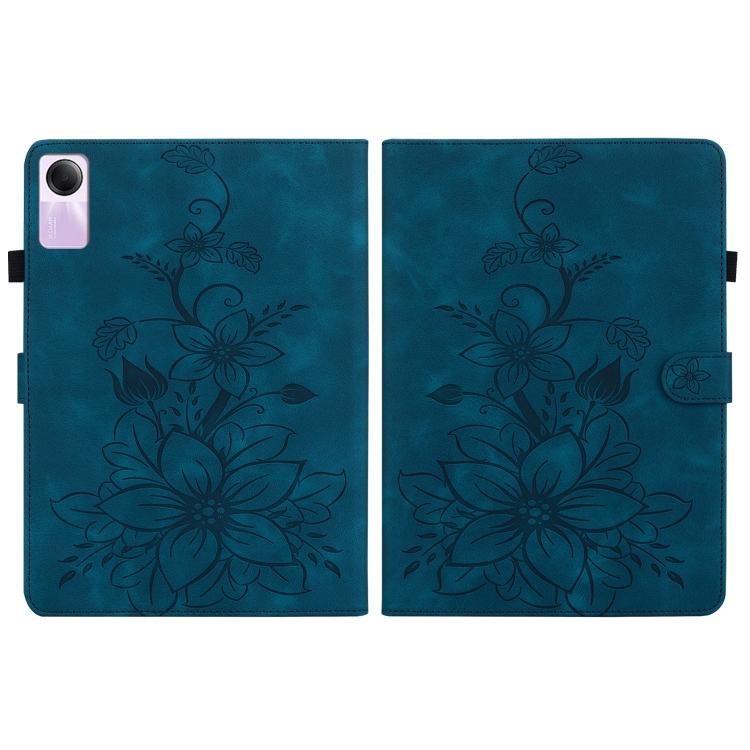Para Xiaomi Redmi Pad Se Lily Funda para Tableta de Cuero En Relieve (Azul Oscuro)