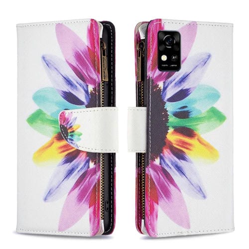 Funda de Cuero para ZTE Blade A31 con Patrón Cremallera y Flor Solar (Color)