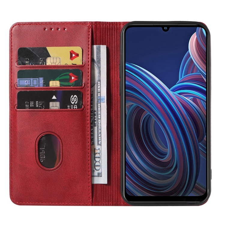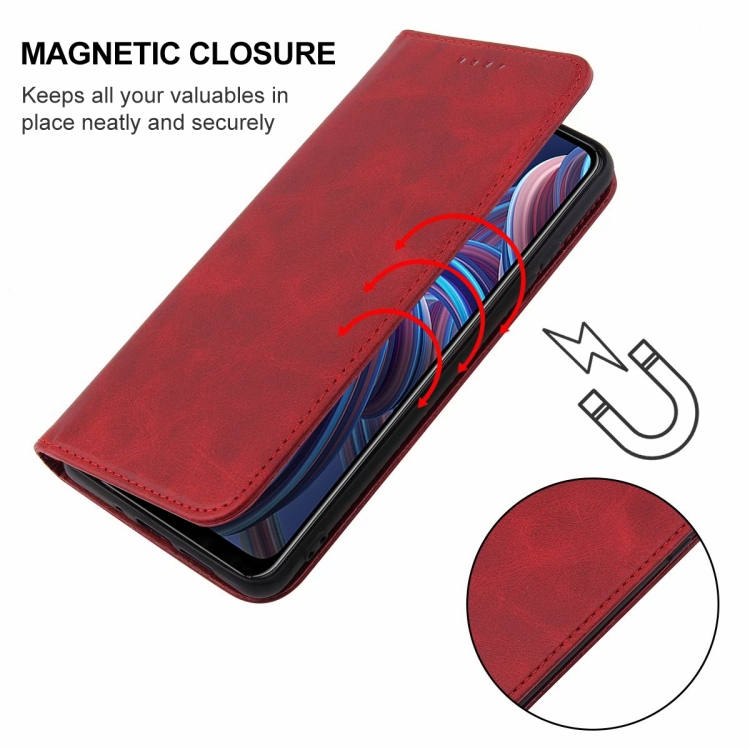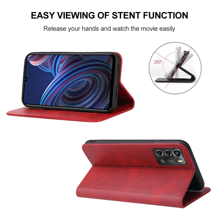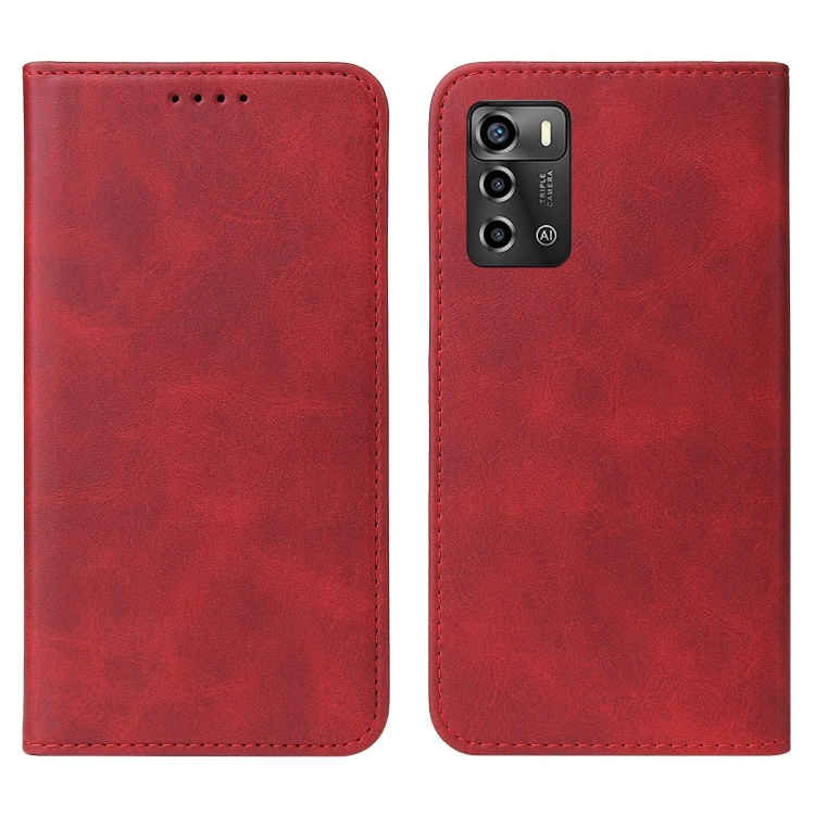 Caja de Teléfono de Cuero para ZTE Blade A72 (2022) con Cierre Magnético (Rojo)