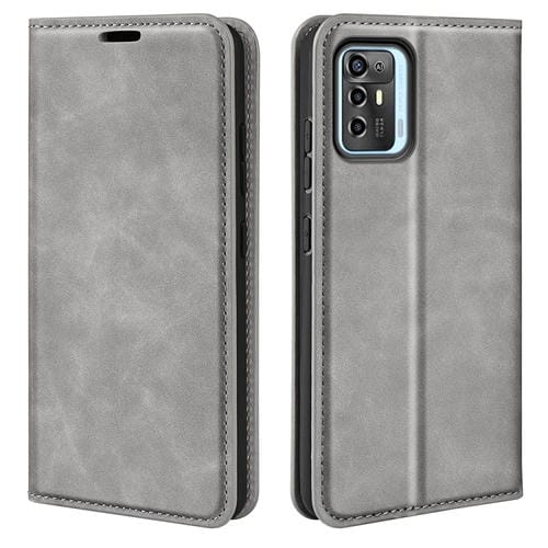 Funda de Cuero para ZTE Blade A72 5G con Succión Magnética de Piel Retro (Gris)