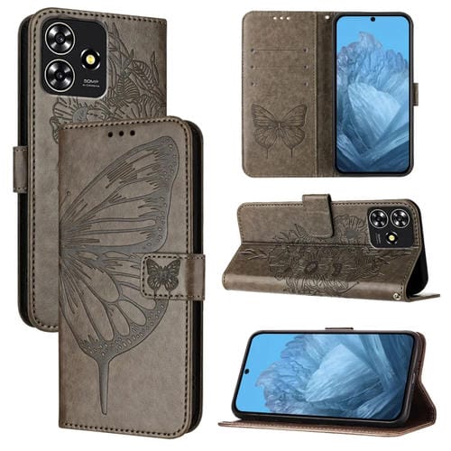 Funda de Cuero para ZTE Blade A73 4G con Mariposa en Relieve (Gris)