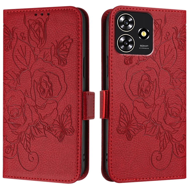 Funda de Cuero Antirrobo RFID para ZTE Blade A73 4G con Relieve (Rojo)