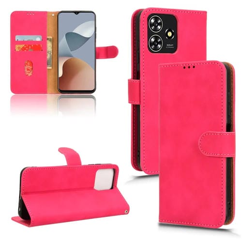 Funda de Cuero con Tapa Magnética para ZTE Blade A73 4G Skin Feel (Rojo Rosa)