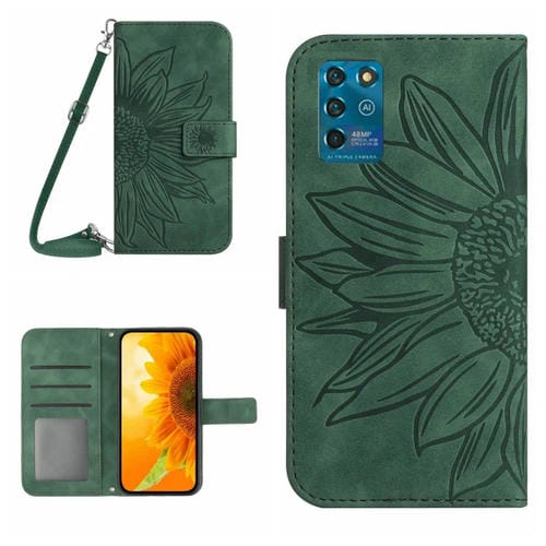 Funda Flip de Cuero para ZTE Blade V30 Vita Skin Feel con Patrón Sun Flower y Cordón (Verde)