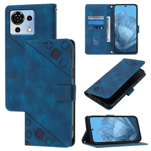 Funda de Cuero para ZTE Blade V50 Vita Skin Feel En Relieve (Azul)