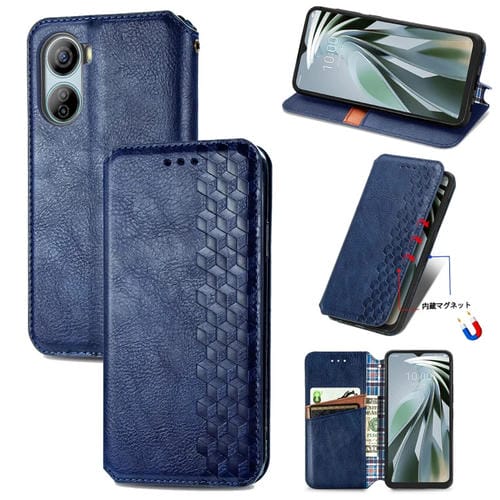 Funda para ZTE Libero 5G Iv de Cuero Magnético Prensado con Rejilla Cúbica (Azul)